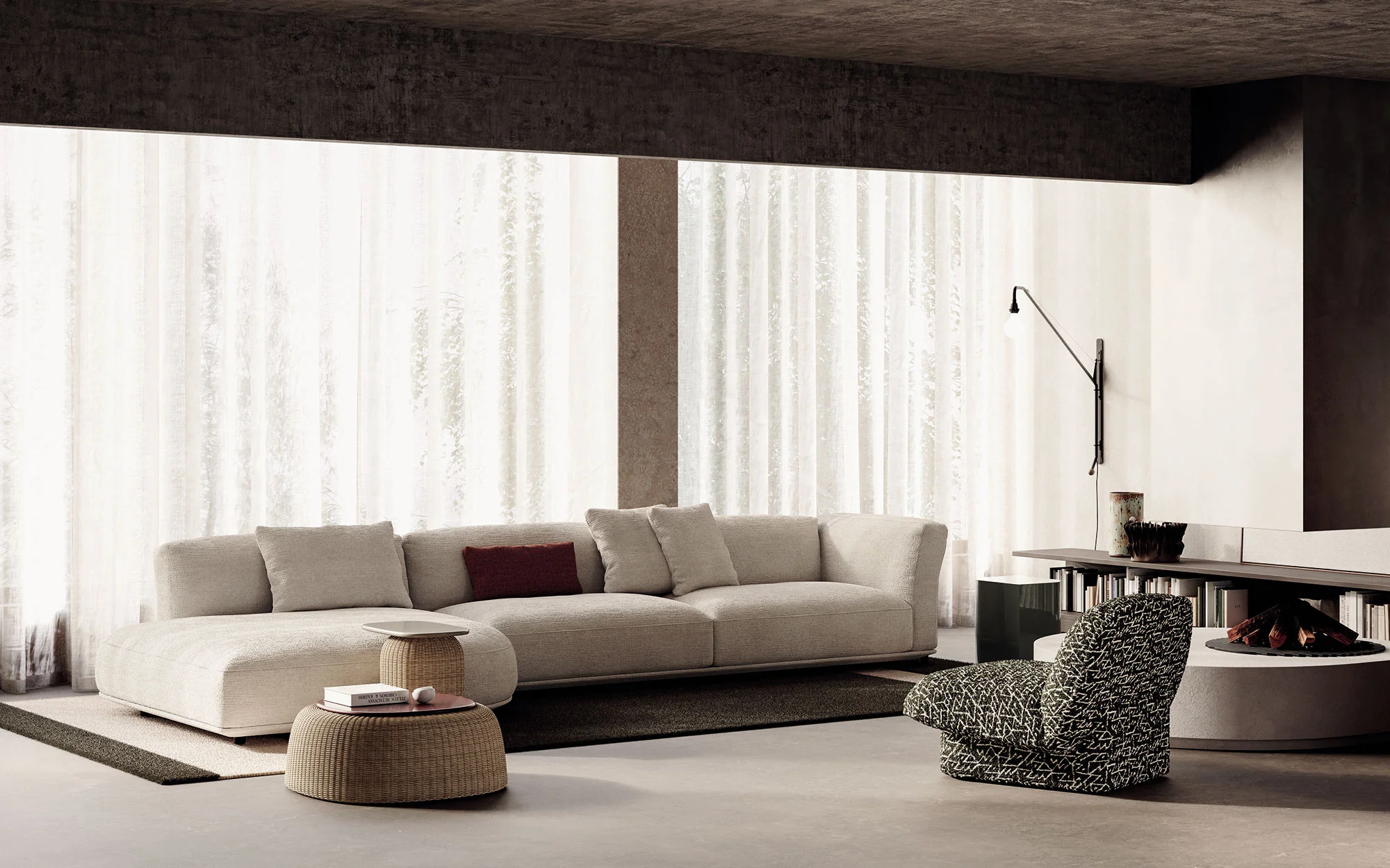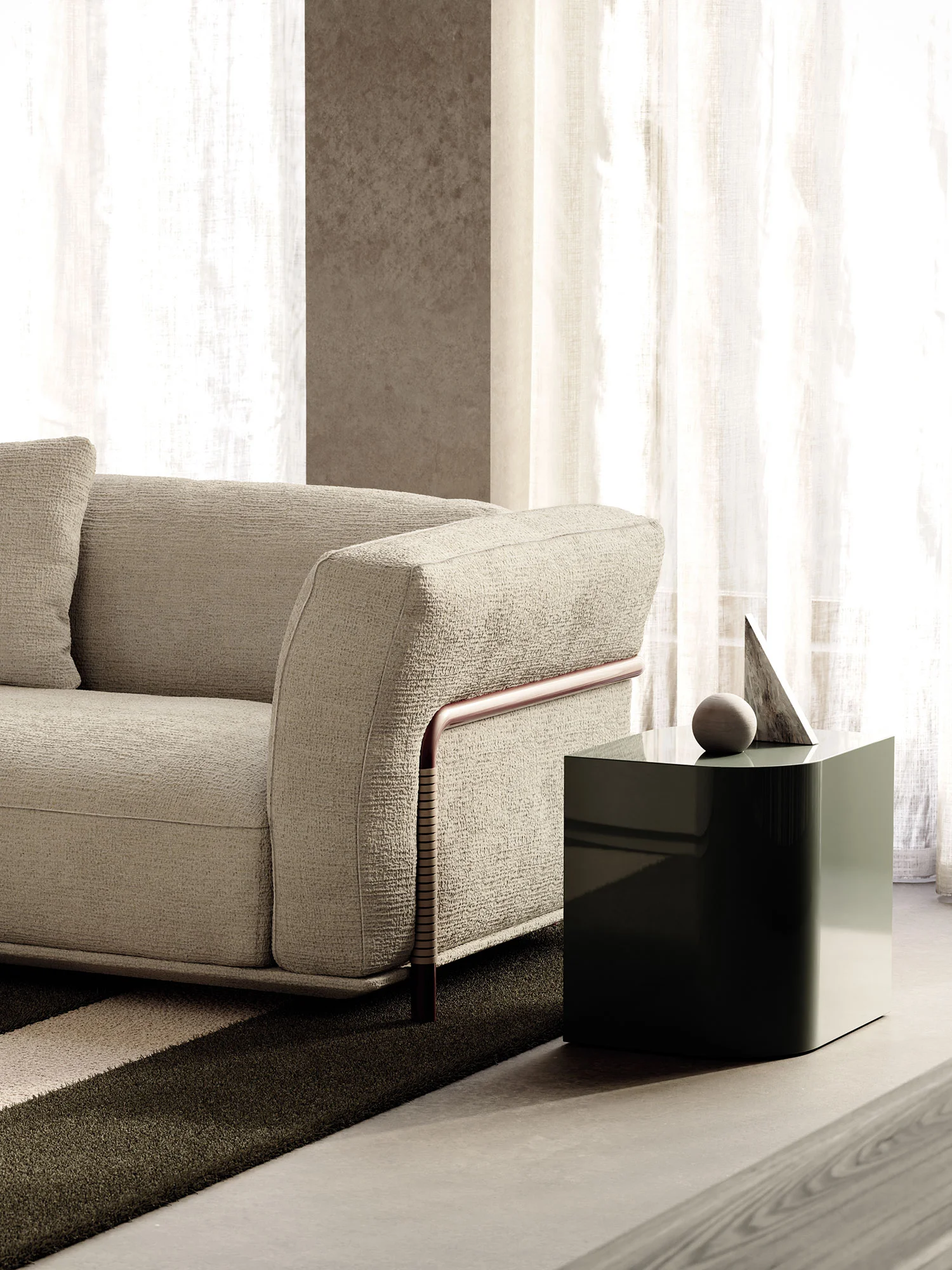 Calvi Brambilla, a multidisciplinary studio founded by Fabio Calvi and Paolo Brambilla that combines architecture, interior design and product design, signs the Felix modular sofa. Capable of blending imagination and rigor, furniture elements and decorative solutions, Calvi Brambilla draws an architectural sign with essential lines, which is distinguished by the elegance of its details. Generous seats, soft backrests and shaped armrests designed for maximum comfort are enclosed by a light metal perimeter: the armrests and the joints in the backrest are embellished with a hide-leather weave, which can be combined with the lacquered metal tubular structure adding a touch of color and fine craftsmanship to this project in a harmonious mix of contemporary design and vintage details. Felix is a piece of furniture with a timeless feeling, able to adapt elegantly to any environment and be interpreted personally, in the choice of textiles and material combinations.