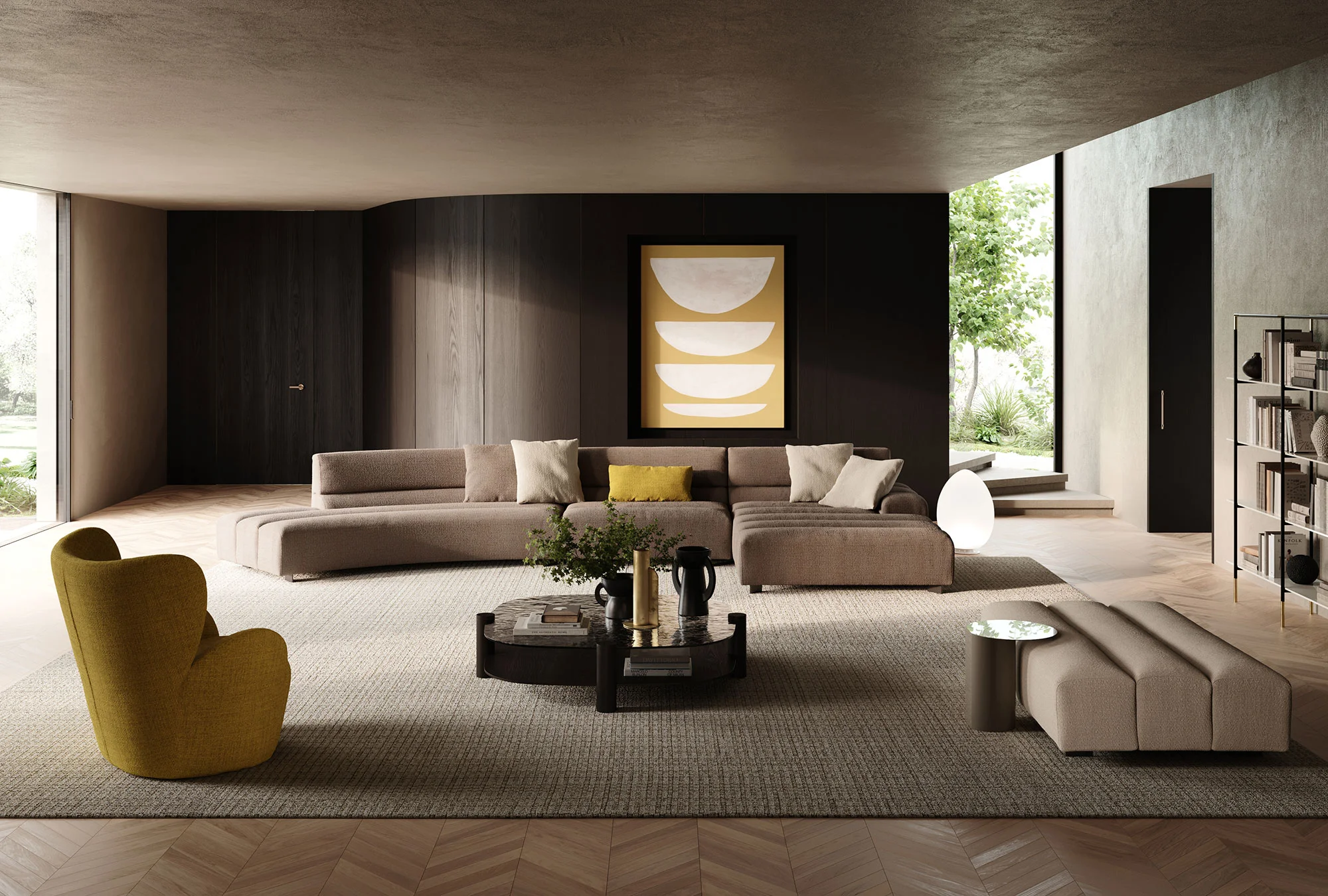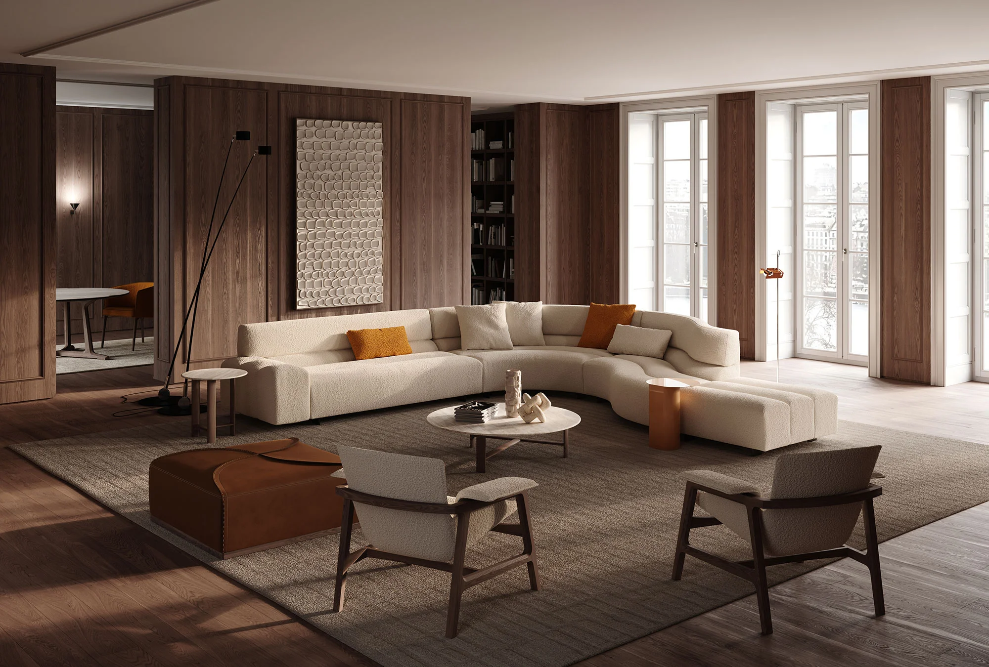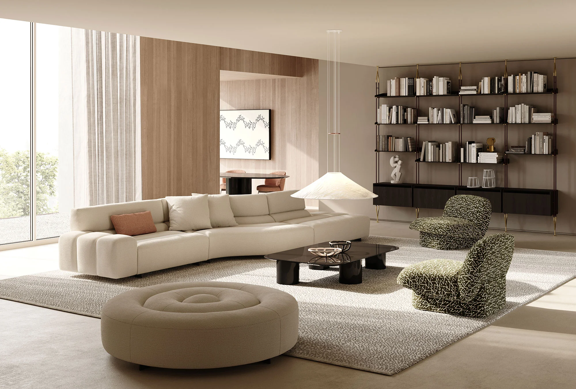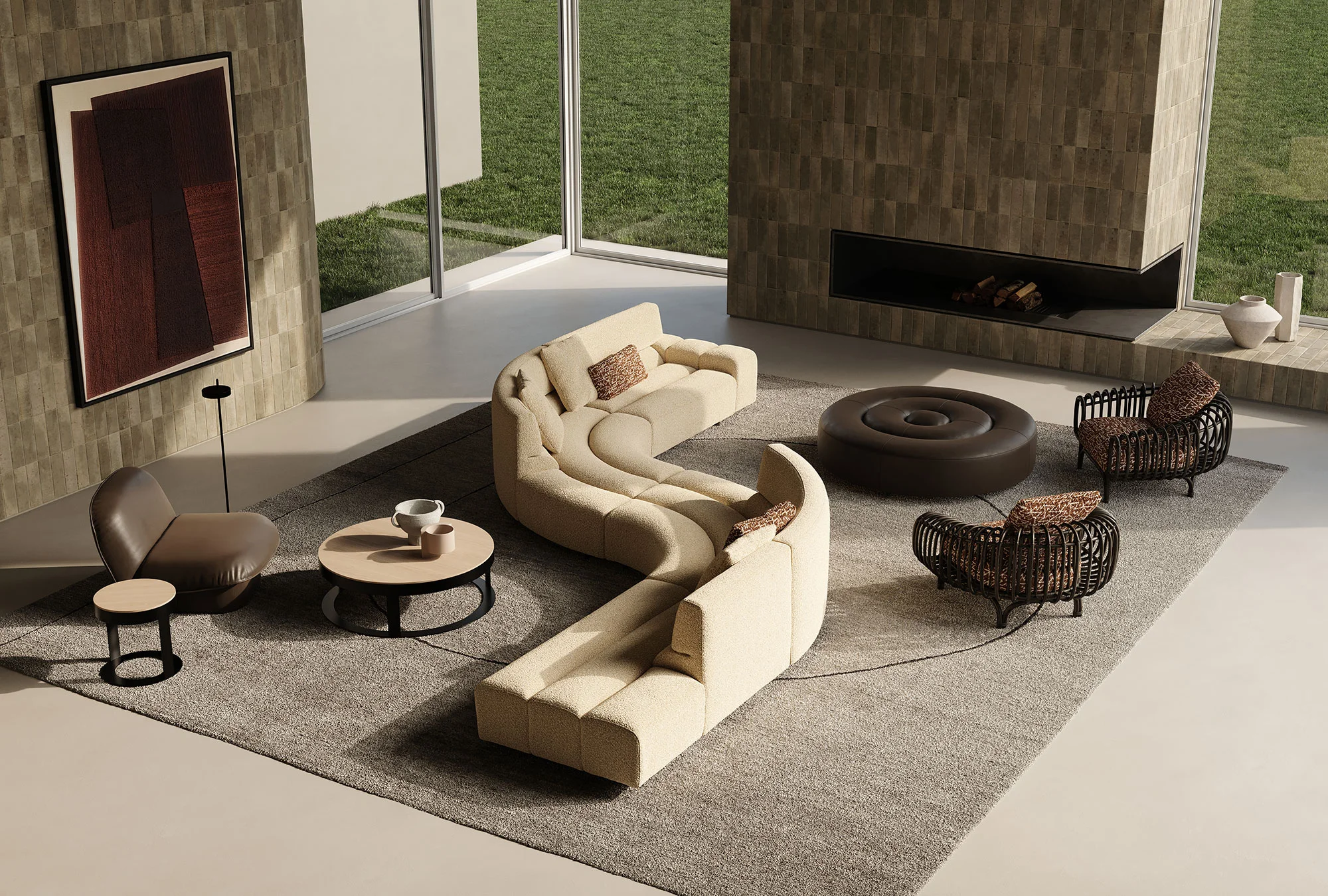 Frigerio celebrates the ritual of conviviality with the new modular sofa Phil, which is distinguished by dynamic shapes that create a sense of connection with space, enhancing the uniqueness of each room. A sinusoidal sofa with a new language, Phil is generated by the succession of juxtaposed padded tubulars that define a fluid and contemporary aesthetic. Versatile and multifaceted, Phil is an expression of casual modernity, an invitation to dare with elegance, adapting perfectly to residential and contract contexts. An enveloping refuge for its curvilinear silhouette, in length it can embrace multiple people, redefining the relationship between furniture, space and human beings.