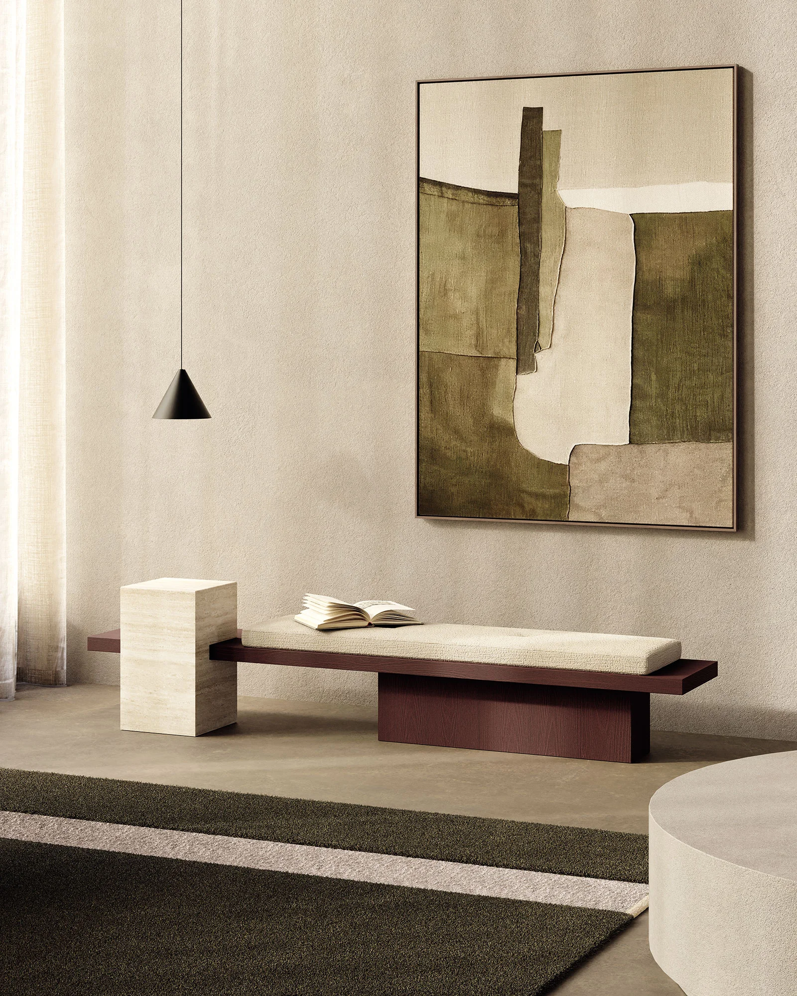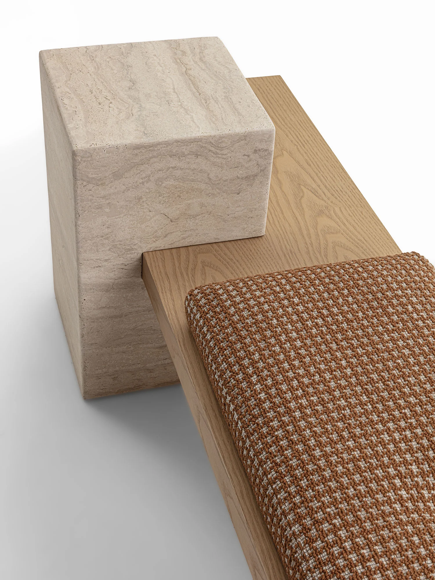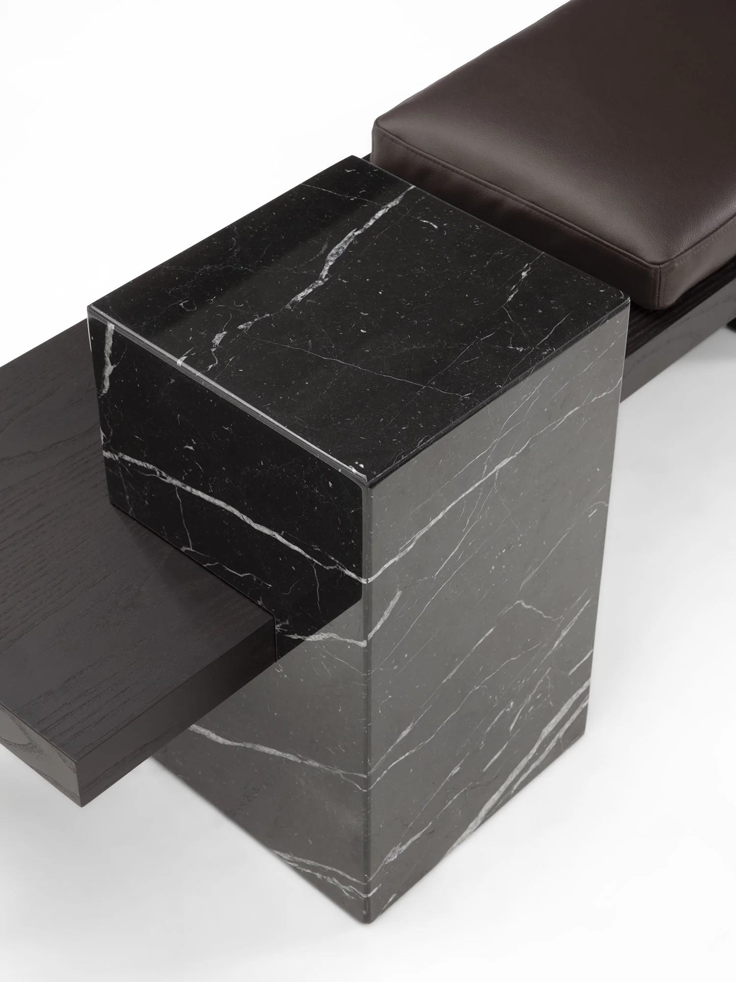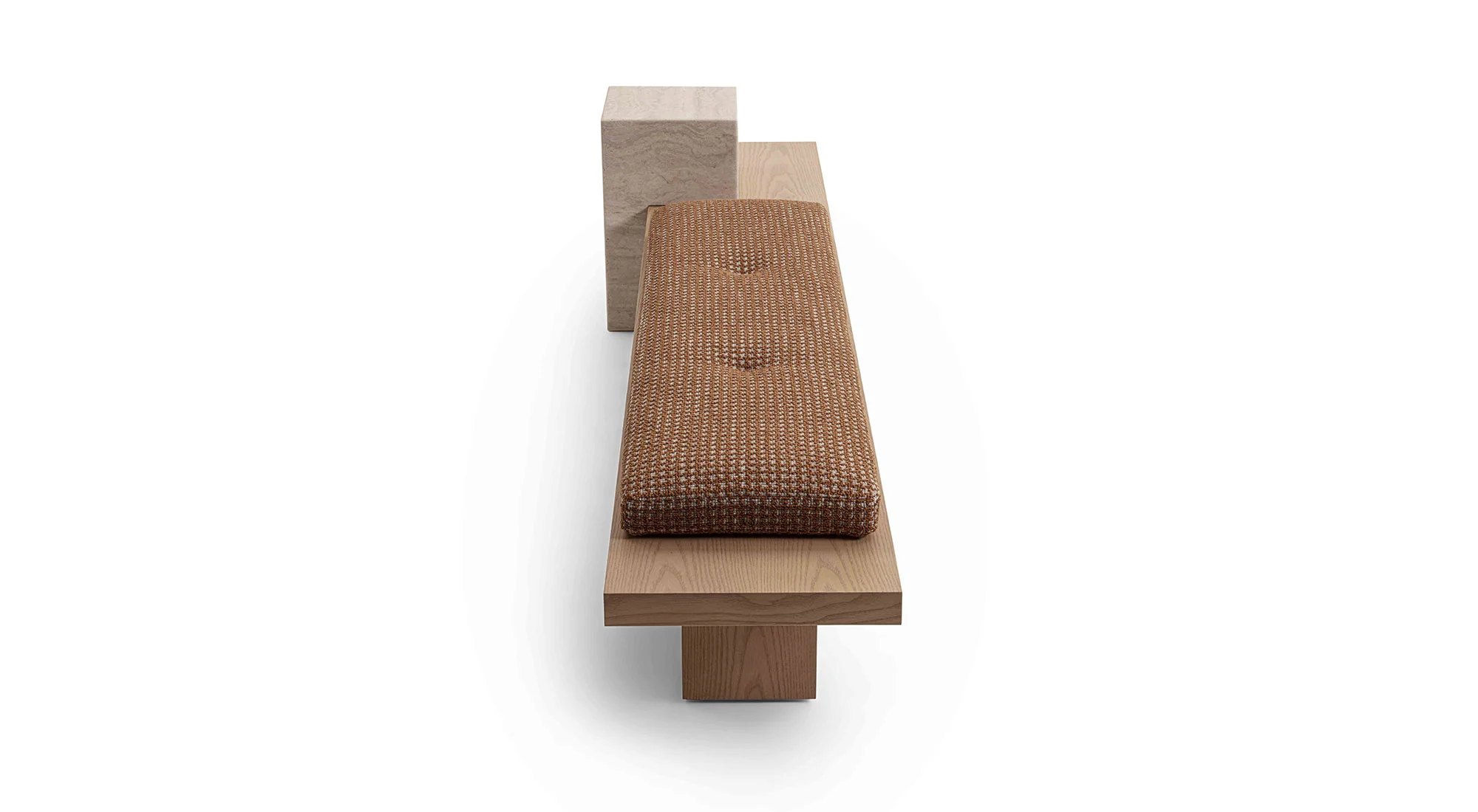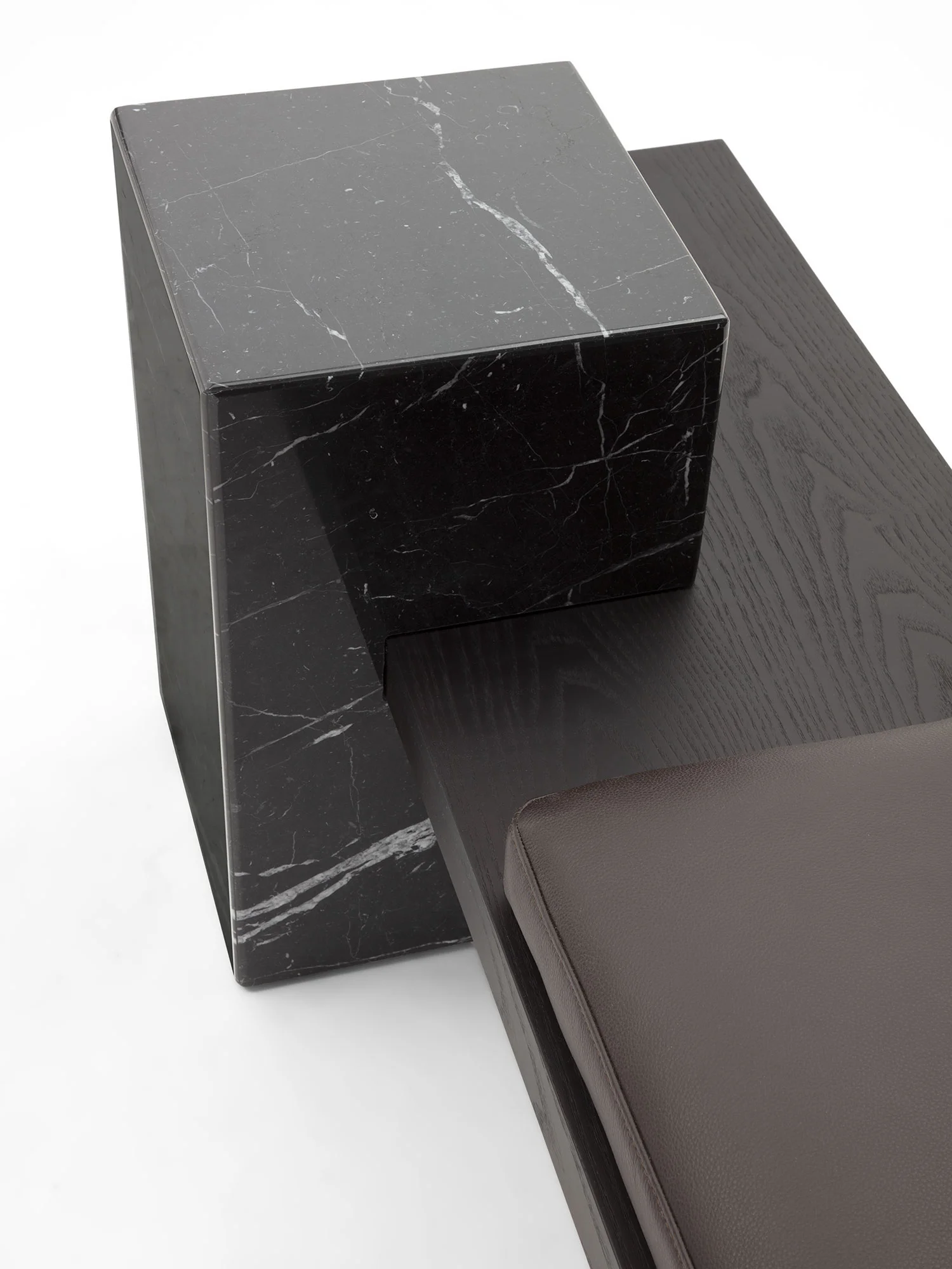 Un ordine plastico e un senso di armonia caratterizzano la panca Metis. Essa si compone di una soffice materassina di puliuretano appoggiata su un piano e una gamba in legno in finitura frassino o in tutti i colori della collezione, in cui si inserisce deciso un volume monolitico in marmo ad incastro, nelle varianti Travertino, Rosso Levanto, Verde Levanto, Nero Marquina e Dark Emperador. Segno deciso, gioco di spessori e sapiente equilibrio tra gli elementi definiscono questa nuova seduta collettiva per la casa e il contract, accogliente e multimateriale.