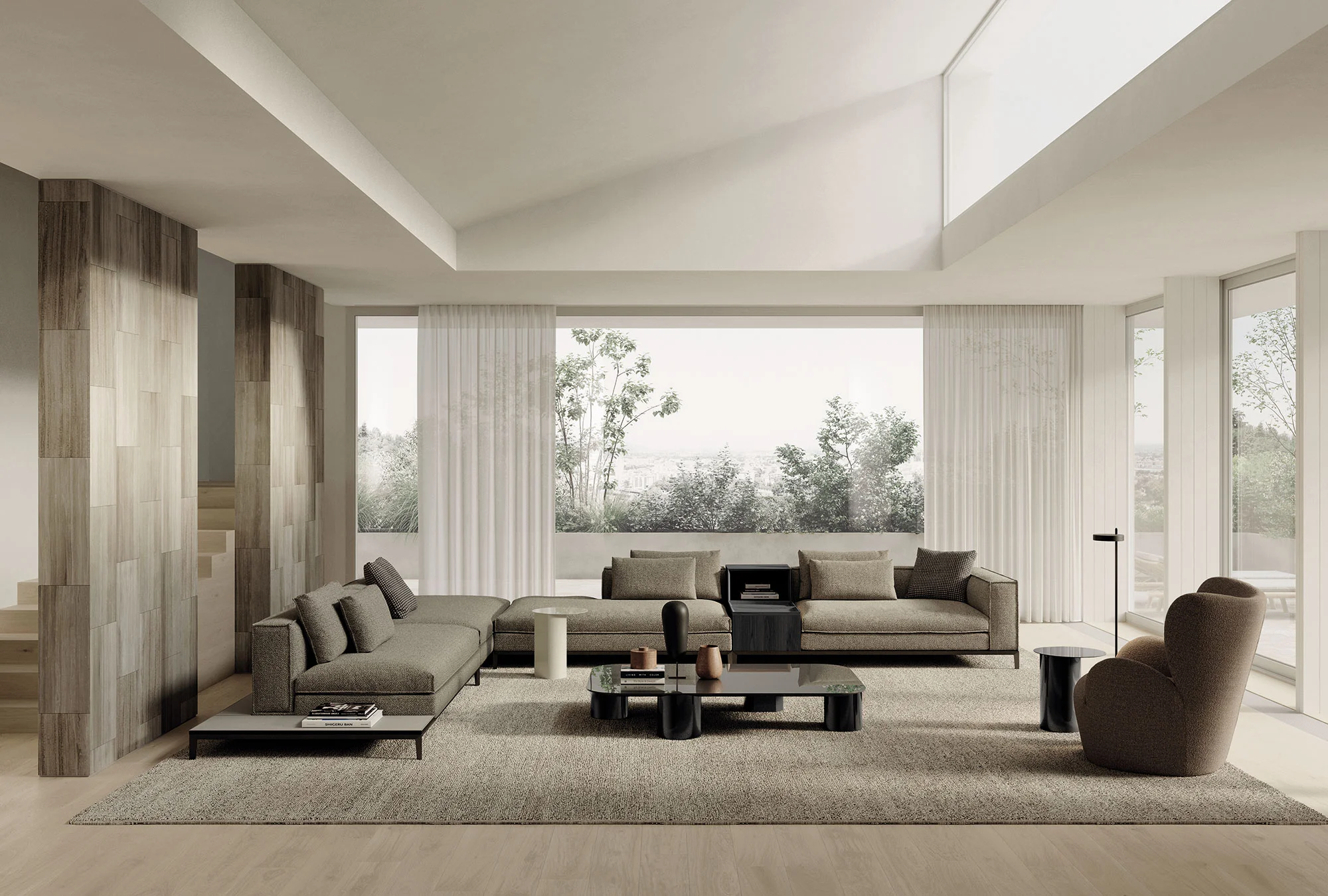 Come lo stile, anche il colore è la rappresentazione di un viaggio nello spazio e nel tempo. I toni chiari sono ideali per rendere ogni ambiente ancora più luminoso e ampio, con uno stile senza tempo. L’armonia degli elementi crea un’atmosfera altamente raffinata ed esprime leggerezza anche nel contrasto tra materiali diversi. Tessuto, pelle, cuoio, legno e marmo, nelle loro numerose sfumature ed intensità di colore, giocano ad accendersi o spegnersi a vicenda, ad esaltarsi e legarsi tra loro, in contrasti materici sensazionali. Gli accostamenti cromatici differenti delineano un gusto personale nel riflesso dell’epoca contemporanea, sempre più eclettica, contaminata, alla ricerca di un’eleganza su misura. Le moodboard Light Harmony evidenzia soluzioni dai colori naturali che virano dalle neutre tonalità del beige al tortora, oppure soluzioni con un tocco di verde che richiama l’energia della natura per un’atmosfera rilassante e vitale allo stesso tempo. Tonalità cromatiche che sposano abbinamenti tradizionali con i toni neutri come il bianco e il grigio e le varie tonalità del legno.