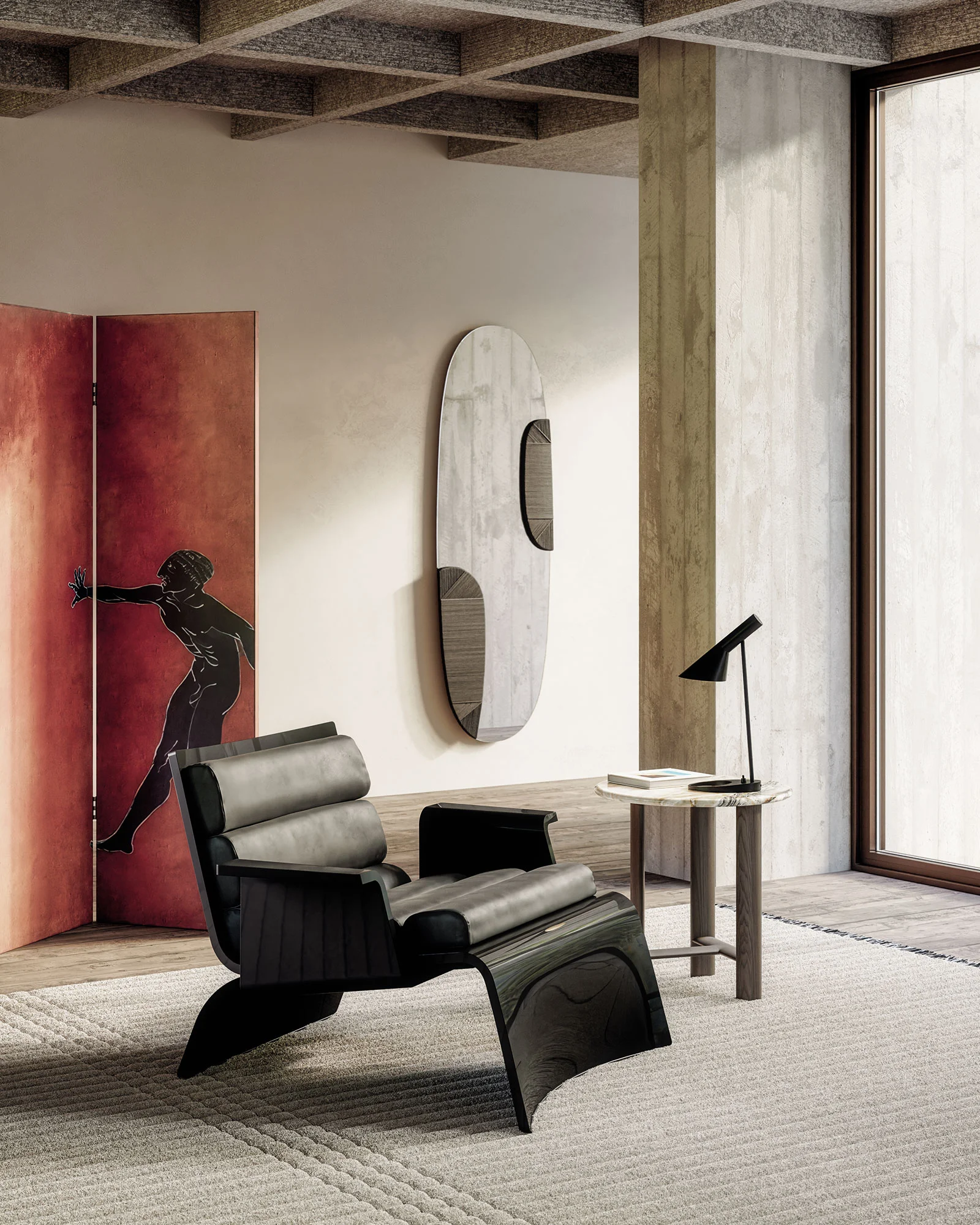 Struttura disponibile: in legno curvato impiallacciato frassino colore Wengé, Tabacco, Greige, Liquirizia, Sabbia, Bordeaux e Forest Green oppure laccato lucido colore Burgundy, Lino, Curry, Corallo, Oliva, Oceano, Salvia, Cipria, Tortora e Nero.