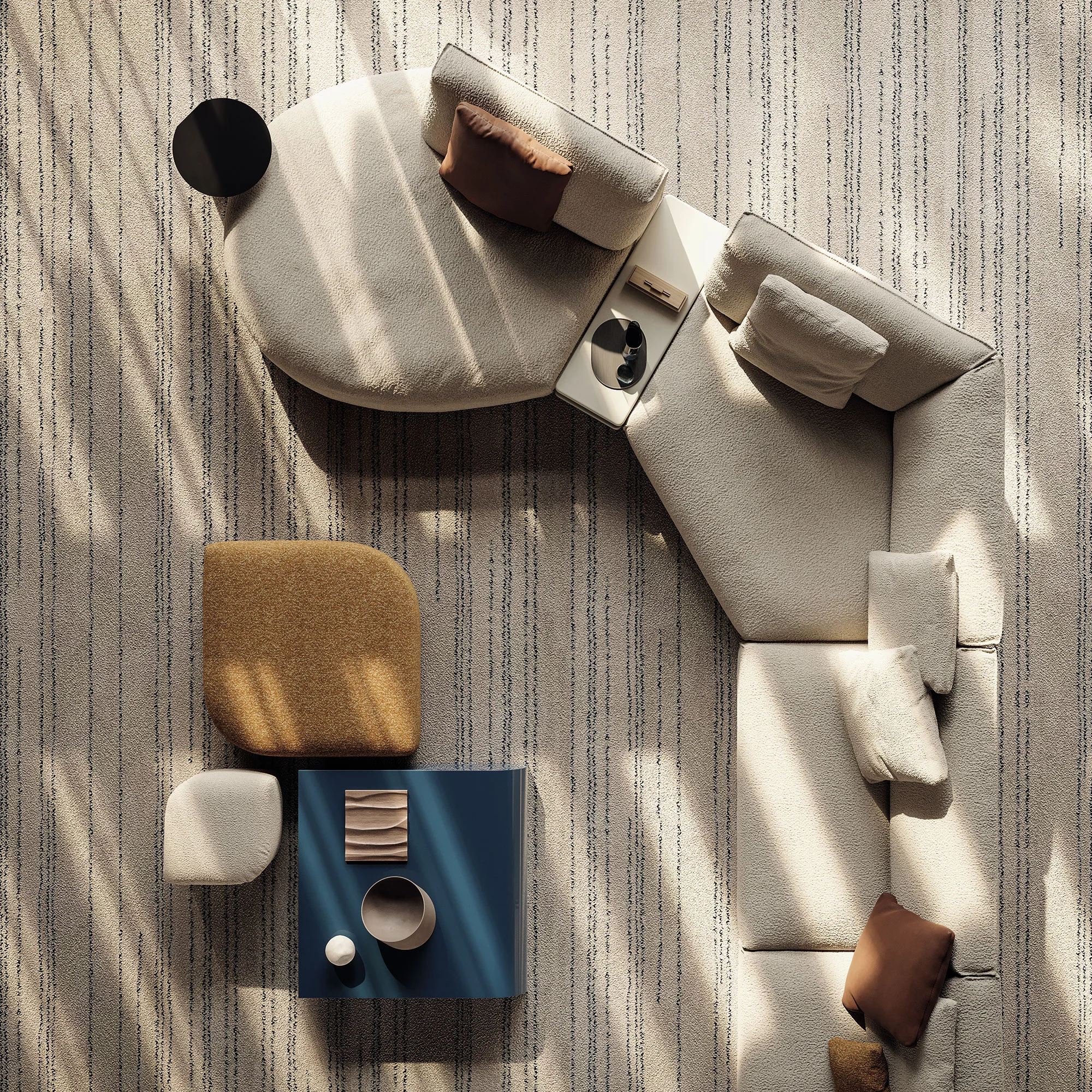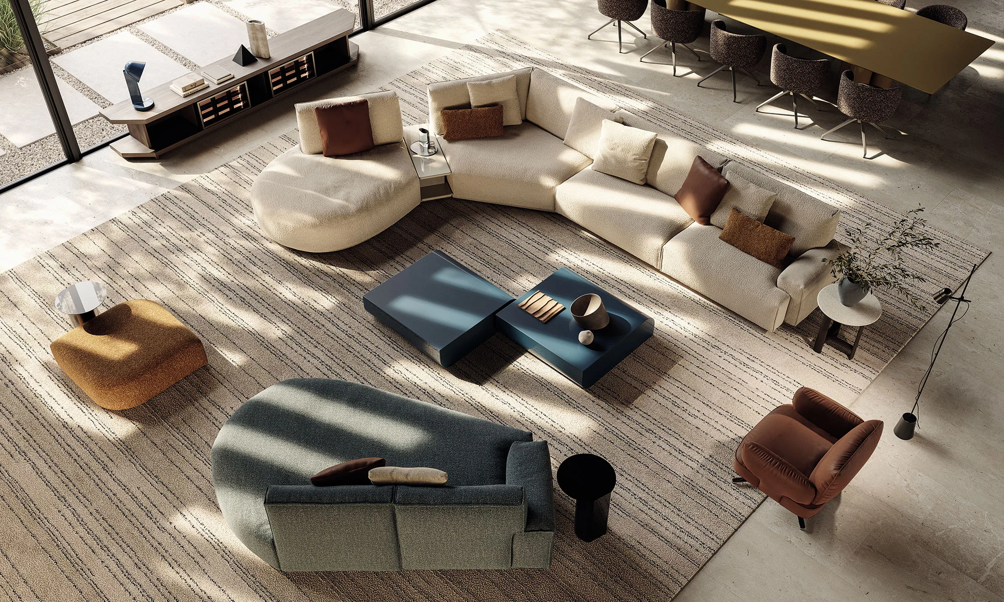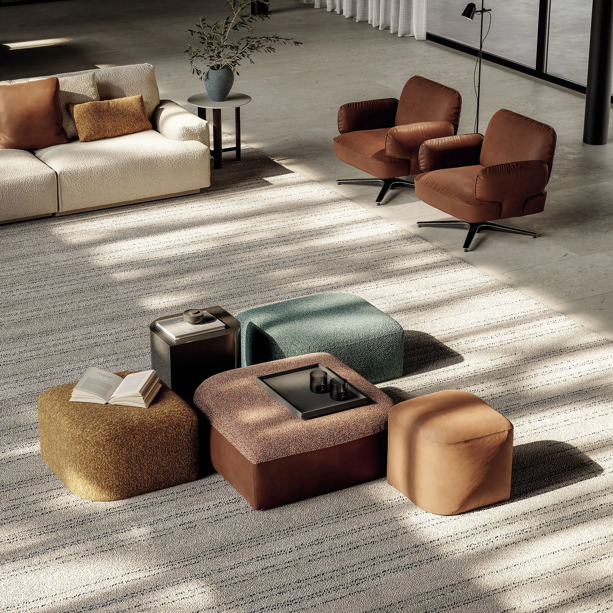 Nati dall’omonima collezione di tavolini, i nuovi pouf Tom di Calvi Brambilla portano nuovo dinamismo nel living Frigerio mantenendo il fil-rouge del design evocativo del movimento delle onde. Pensati per integrarsi perfettamente con il sistema di divani e tavolini della collezione si caratterizzano da forme voluminose che giocano con sovrapposizioni e accostamenti grazie ai tagli asimmetrici della silhouette. I pouf Tom diventano volumi flessibili, posizionabili con facilità in qualsiasi progetto domestico e nel contract cui offrono sedute aggiuntive morbide e confortevoli, i pouf sono pezzi volanti da usare singolarmente o combinare in composizioni che giocano con altezze, formati e materiali di rivestimento.