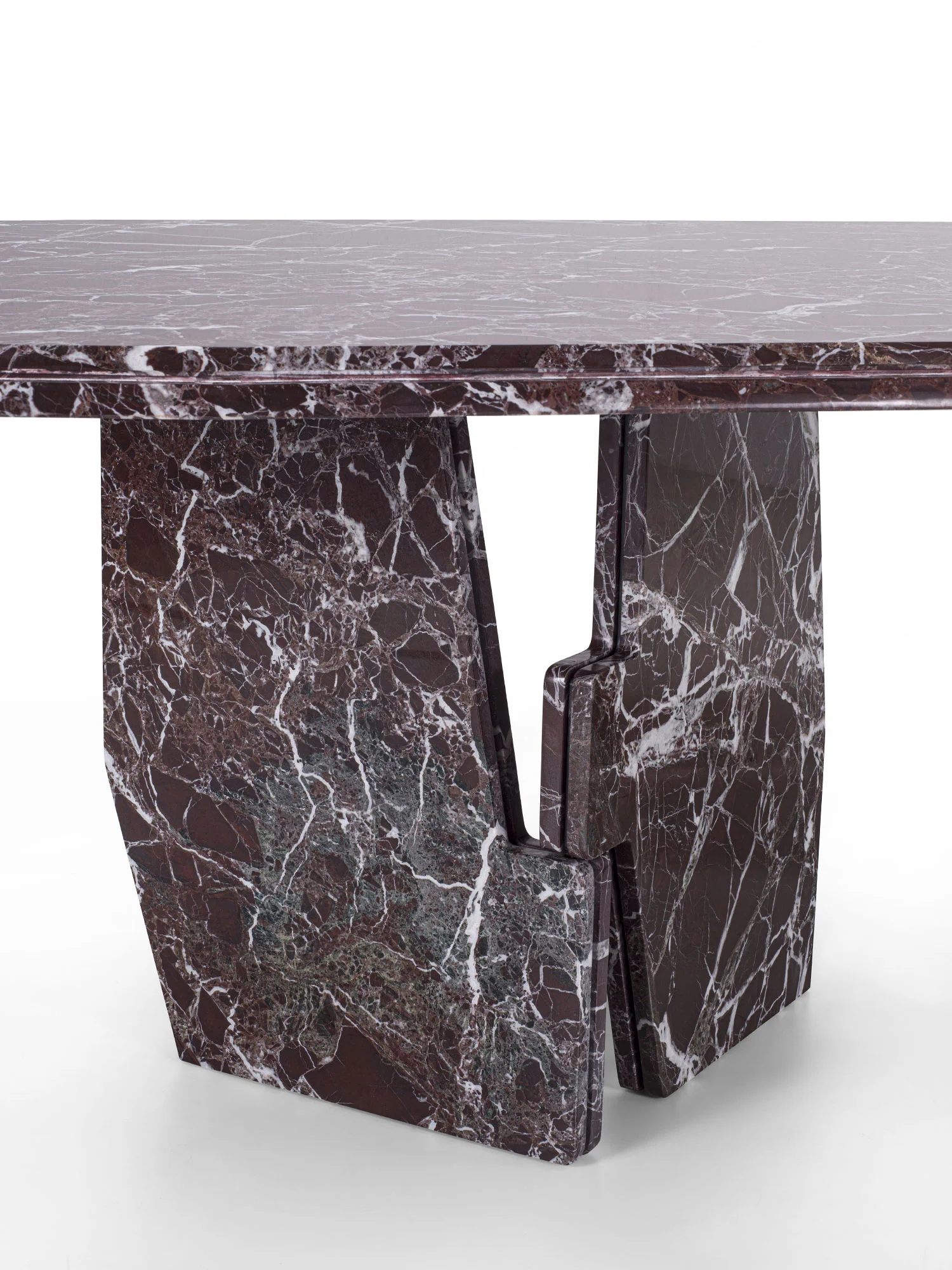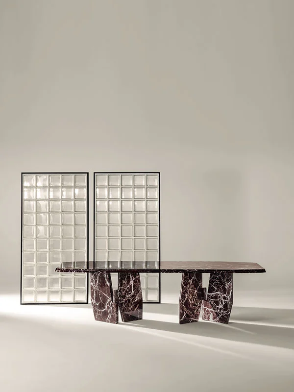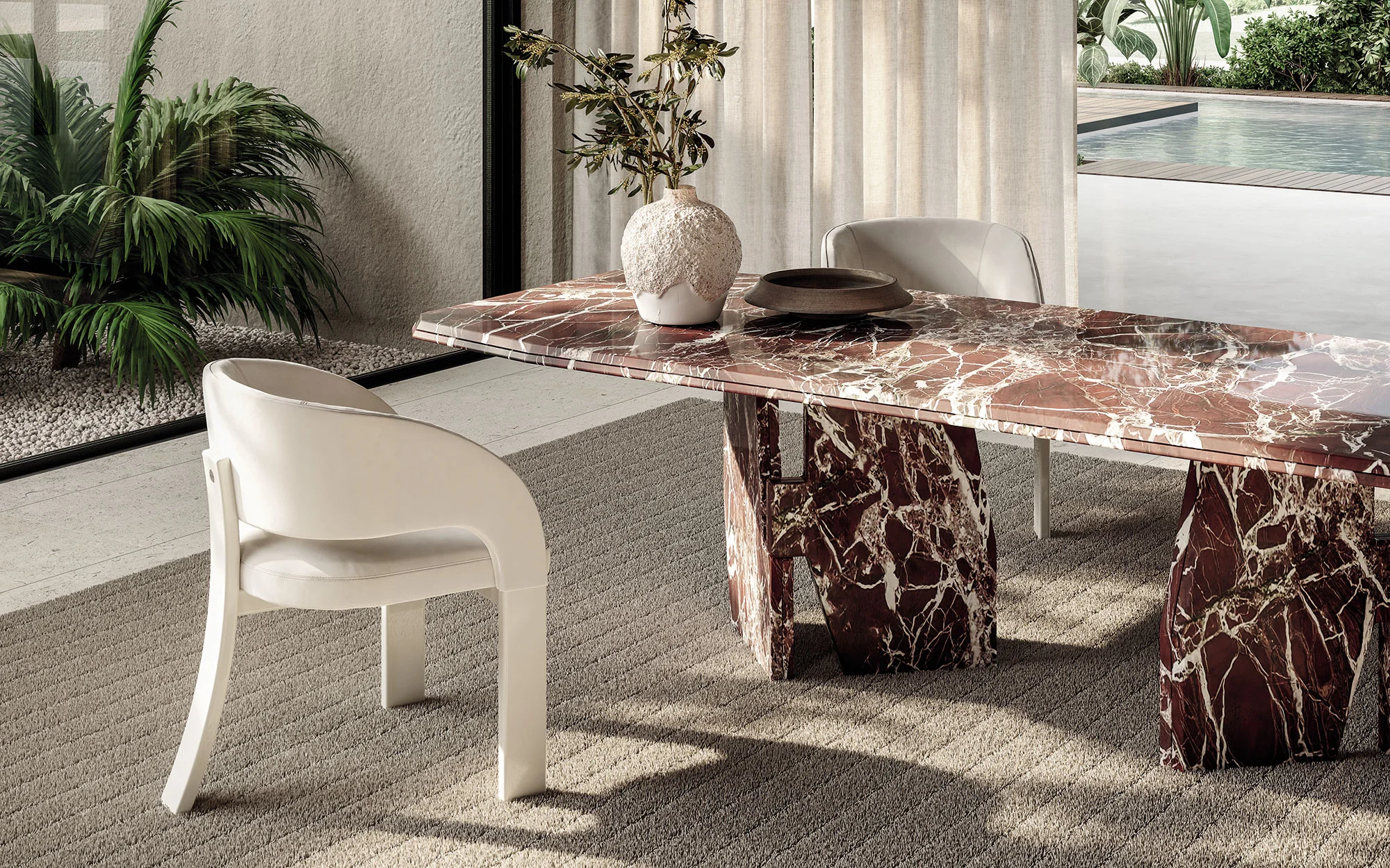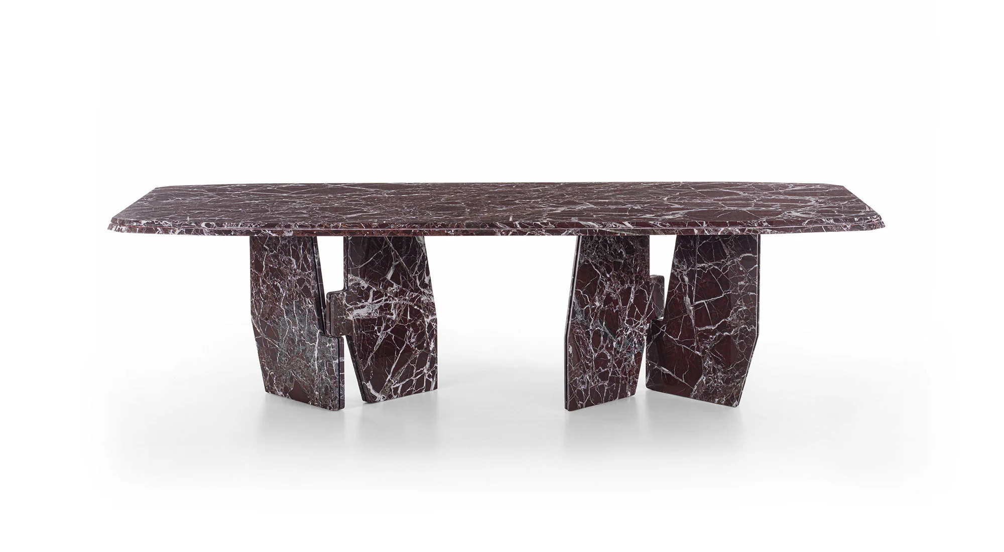 Rigore razionale, leggerezza percettiva e precisione del dettaglio: il nuovo tavolo Kumo disegnato da Calvi Brambilla presenta un piano rettangolare con spigoli smussati e una doppia base, costituita da due elementi di sostegno ancorati da un giunto. Astrazione organica e presenza plastica caratterizzano il progetto, che vive del contrasto dinamico tra massa e vuoto, equilibrio e tensione, in un dialogo continuo tra forme autonome. Disponibile in tutti i marmi della collezione Frigerio, Kumo riempie lo spazio come una danza, evocando le forme fluide e i colori audaci delle sculture di Calder ed Henry Moore.