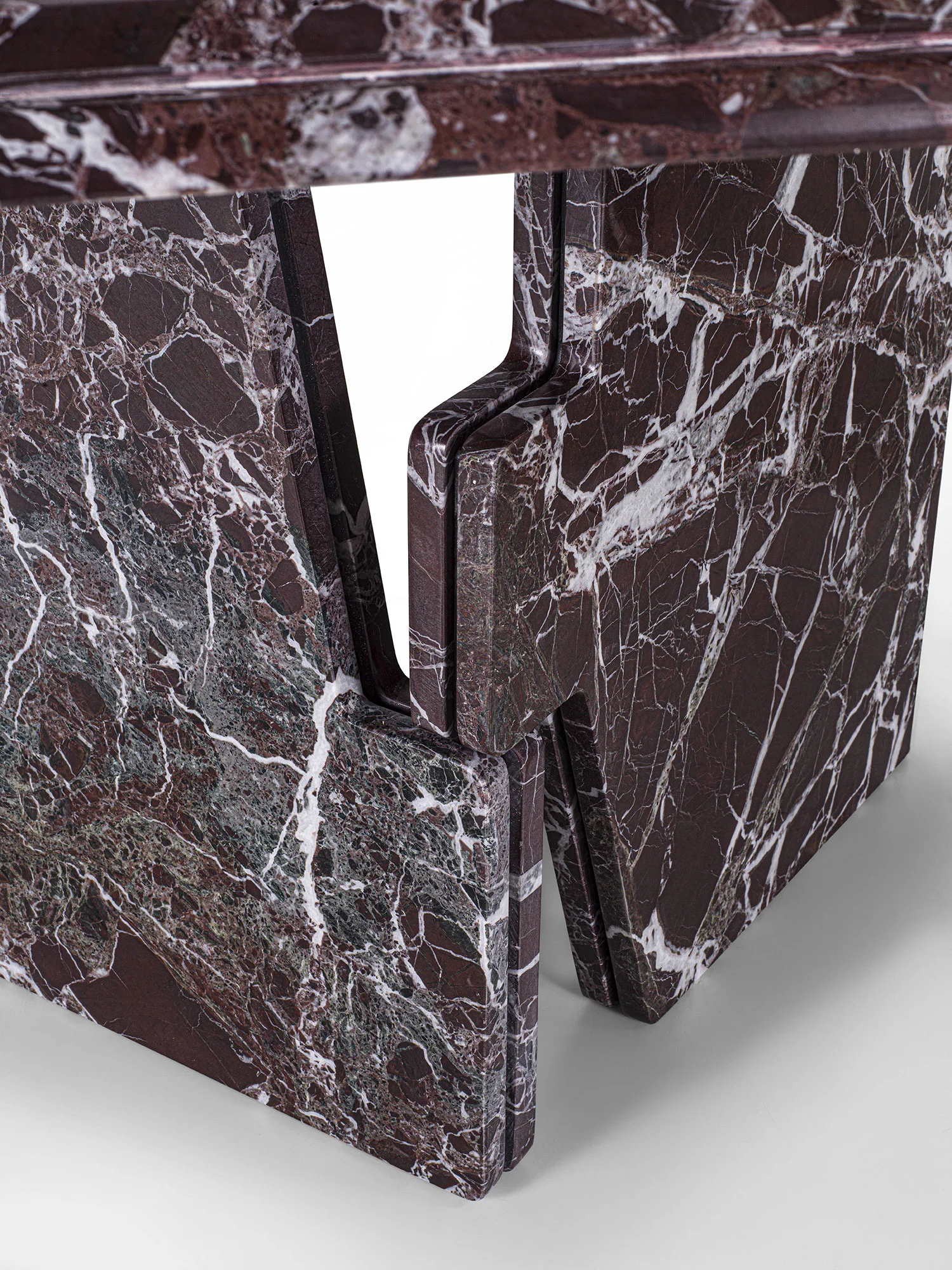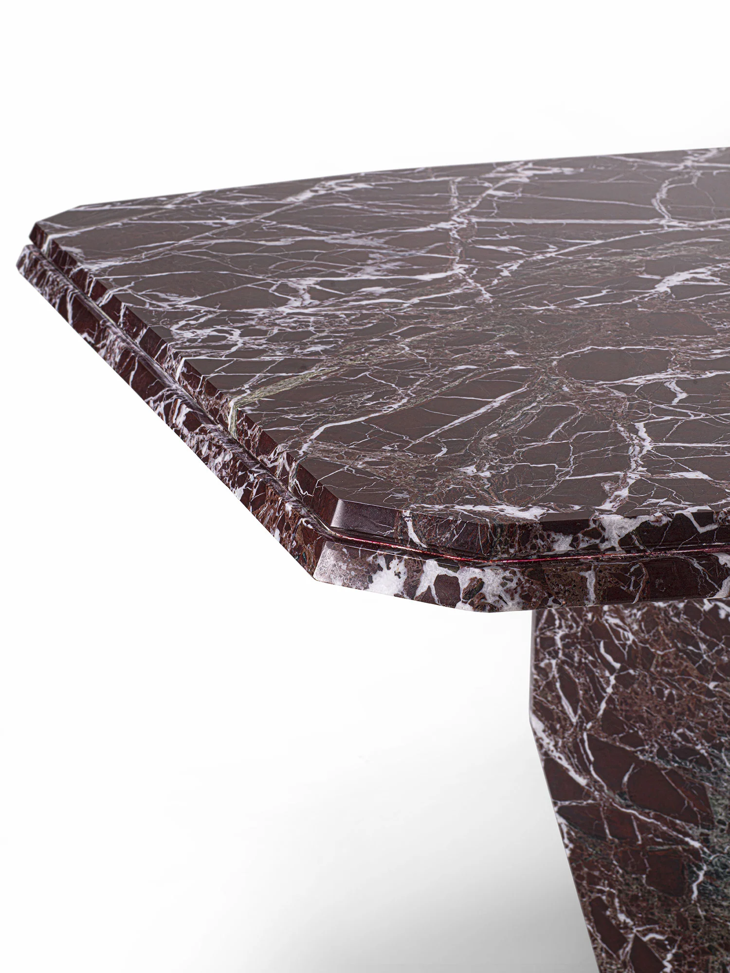 Piano e gambe nello stesso marmo: marmo lucido Dark Emperador, marmo lucido Nero Marquina, marmo lucido Orobico, marmo lucido Verde Levanto, marmo lucido Onice Travertino, marmo lucido Rosso Levanto, marmo Breccia Damascata finitura effetto pelle, marmo naturale poro aperto Travertino, marmo poliestere lucido Nero Sahara, marmo lucido Ocean Storm, marmo lucido Dover White (MR4), marmo poro chiuso Travertino (MR4) o marmo lucido Calacatta Oro (MR5)