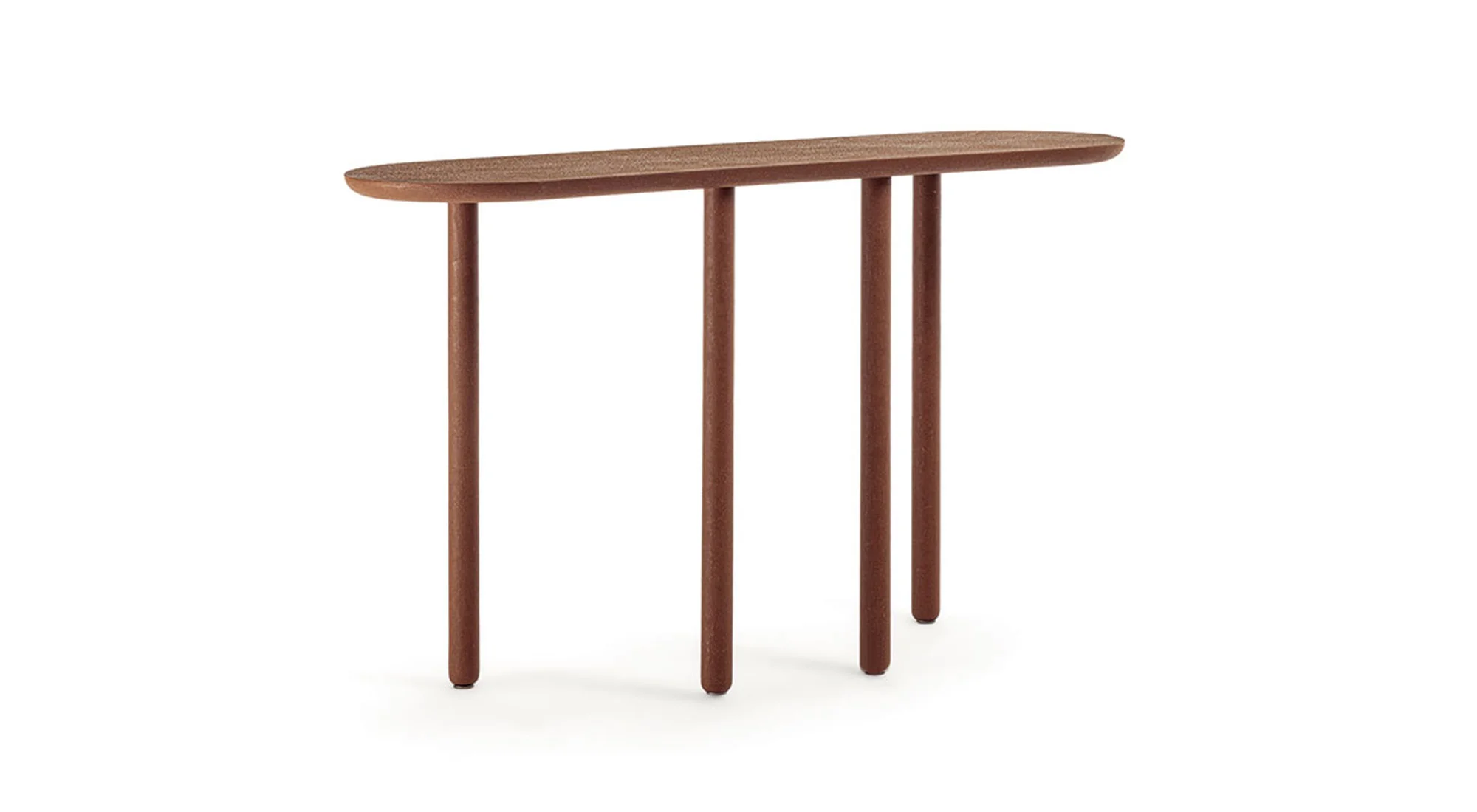 Piani di appoggio e insieme elementi decorativi rivestiti con una selezione di finiture materiche che celebrano l’essenza vibrante del cemento. La famiglia Roll-O, oltre al tavolo tondo, accoglie anche la console, un arredo definito dal ritmo inaspettato delle quattro sottili gambe d’appoggio. Le gambe frontali sono posizionate asimmetricamente rispetto a quelle posteriori e terminano con una delicata linea stondata, accentuando la leggerezza e la sostanzialità compositiva dell’arredo. Una console che trova la sua bellezza nella semplicità e nella versatilità d’utilizzo, permettendo di rivisitare in chiave contemporanea qualsiasi tipologia di spazio, dall’area pubblica all’ambiente domestico.